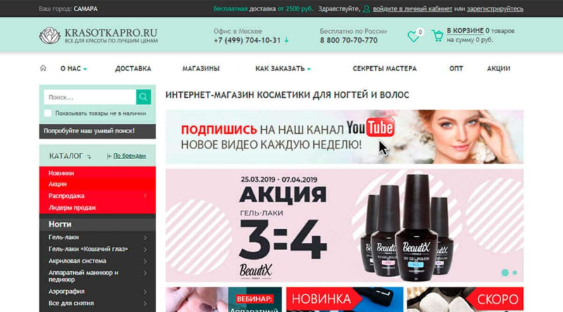 KrasotkaPro — крупнейший в России розничный магазин косметики, предлагающий более 20 000 товаров, включая более 6 000 гель-красок от более чем 100 брендов. На сайте представлены: косметика для лица и волос, инструменты для ухода, декоративная косметика, кисти, лаки и краски. Ассортимент женских аксессуаров действительно обширен.