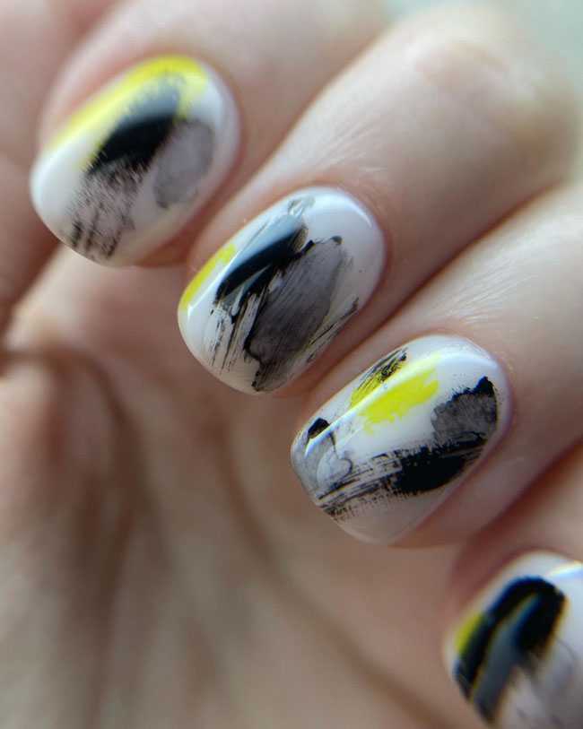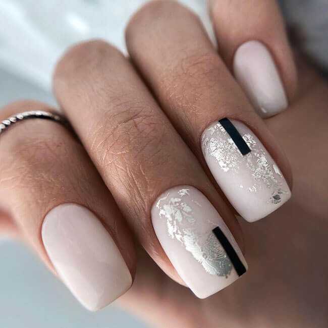 Также в тренде техника «битое стекло», стемпинг и паутинка. Любой из вариантов будет обворожительным. Креативно будет смотреться маникюр «кошачий глаз» или дизайн в полоску. Стильный дизайн можно создать при помощи ромбиков, квадратов и кружочков. Также актуальны зигзаги и волнистые линии. Для элегантных дам подойдет декорирование при помощи фольги. Лучше выбирать золотистую, она придает нотку «роскоши» любому дизайну.