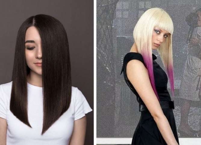 2. Если у красавицы длинные прямые волосы, то лучше выполнить стрижку с ровным срезом, без линий, слоев и переходов. Графичная прическа привносит в образ модницы резкие нотки, поэтому подойдет молодым барышням с овальным лицом. Можно сочетать со всеми видами челок.