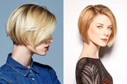 Среди вариантов замысловатое каре с филировкой и гладкое — зачесанное назад, а также асимметричный и идеально ровный боб, что контрастируют между собой, но для многих девушек будут идеальными.