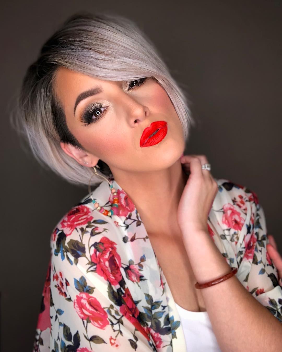 Из-за контраста можно смягчить черты лица, придавая им женственность. Женщинам постарше представляется возможность выглядеть моложе, если они сделают асимметричную или косую челку. В довершение можно создать ступенчатую или градуированную стрижку.