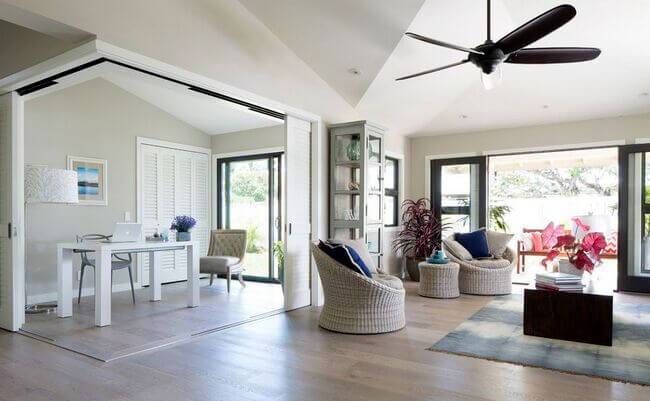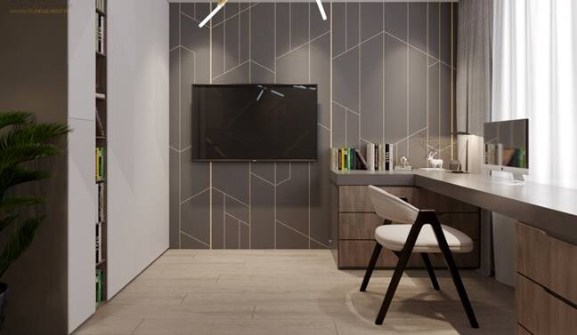 Если есть такая необходимость, то эта отдельная комната или огороженное пространство может быть звукоизолировано, а дверь снабжена замком для того, чтобы домочадцы не беспокоили работающего человека.