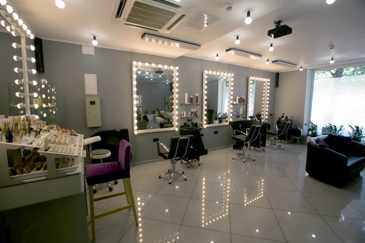 Грамотное освещение особенно важно, когда составляется дизайн студии красоты с небольшими габаритами. С его помощью можно зрительно придать пространству воздушности и свободы. Независимо от общего освещения салона, каждое рабочее место должно быть хорошо освещено