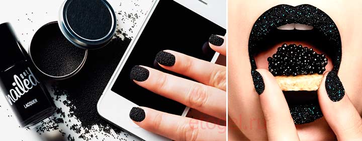 Он не зря так называется, потому что он выглядел, как будто на ваш ноготь рассыпали икру. Делается он обычно черными бульонками. Чтобы сделать его вам не понадобится много усилий: