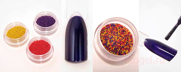 Зачастую икринки применяют как дополнение уже готового рисунка, сделанного с помощью гель лака.