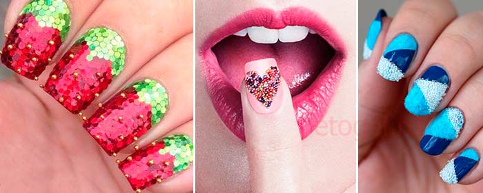 Полное заполнение всех ноготков икринками выглядит необычно, но не всегда уместно в повседневной жизни. Очень популярен вариант с заполнением бульонками лишь одного ногтя (обычно на безымянном пальце) — так икринки можно носить хоть каждый день.