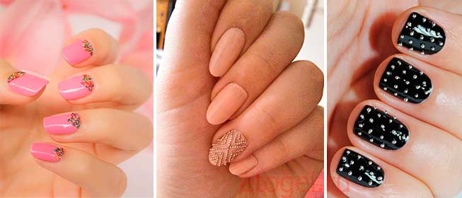 Бульонки и стразы хорошо дополняют друг другу и позволяют создавать затейливые узоры. Такой вид дизайна очень броский и подойдет для периода весна-лето. Для работы можно подбирать более сдержанные однотонные варианты. Единственное предостережение: не стоит перенасыщать руки обилием гранул и страз, иначе маникюр будет смотреться безвкусно. Для этого лучше всего делать узор из страз и бульонок на 1-2 ногтях каждой руки. Перед сочетанием этих элементов нужно тщательно продумать дизайн.