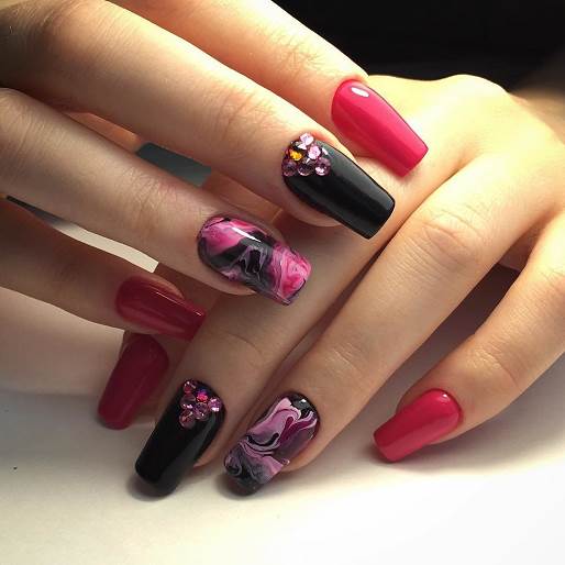 Этот типа нейл-арта объемный и красивый. 3д дизайн маникюра можно сделать из стразов, наклеек и лепки и много другого.