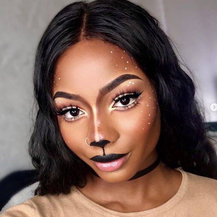 Если нет возможности купить грим, воспользуйтесь обычными косметическими средствами. База под макияж, самый светлый тон для лица, тени, контурные карандаши – помогут вам в создании образа. Ах да, не забудьте прорисовать малюсенький кошачий носик – и ваш гримм на Хэллоуин будет завершен.
