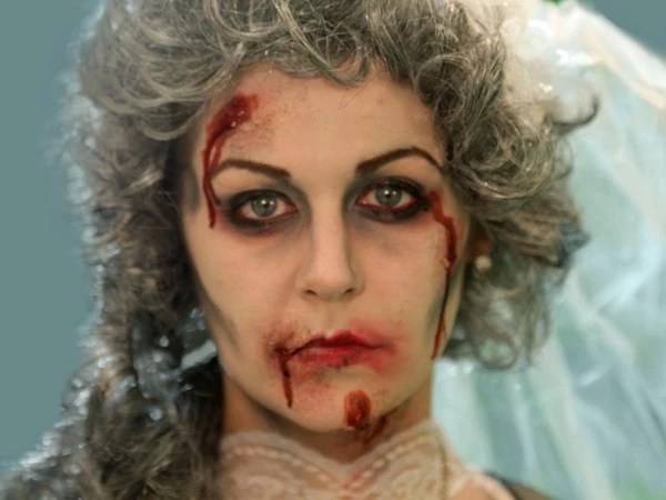 - Дополните самый страшный макияж девушке на Хэллоуин нарядом мертвой невесты, созданным своими руками или взятым в прокате.