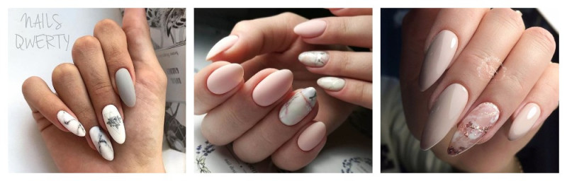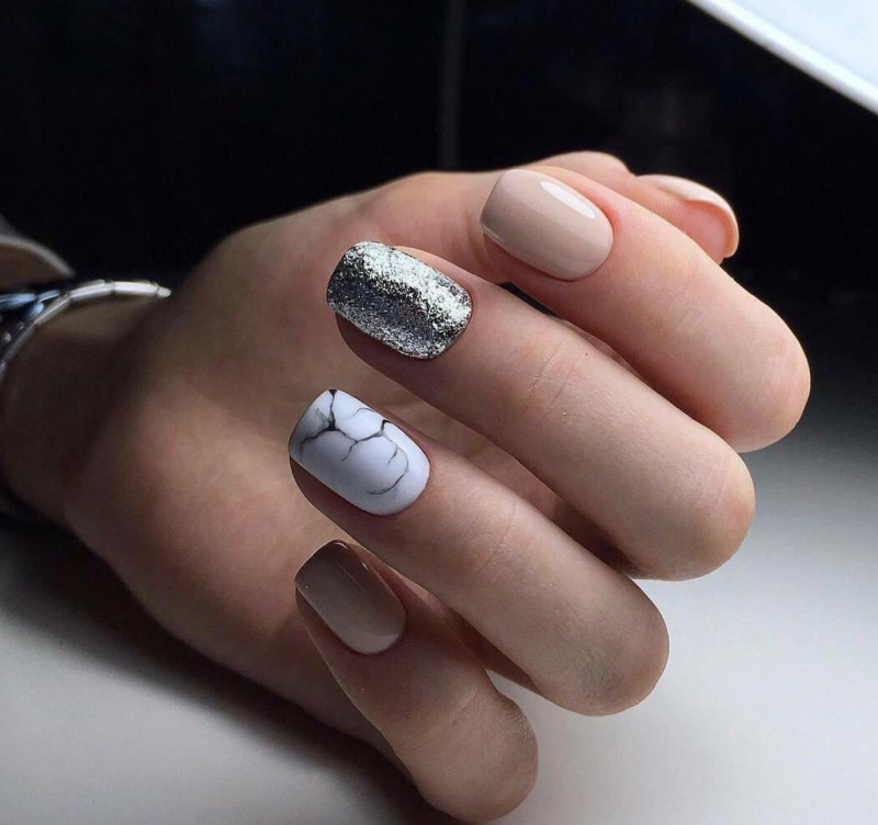 Нежный и светлый мраморный маникюр в трех оттенках.