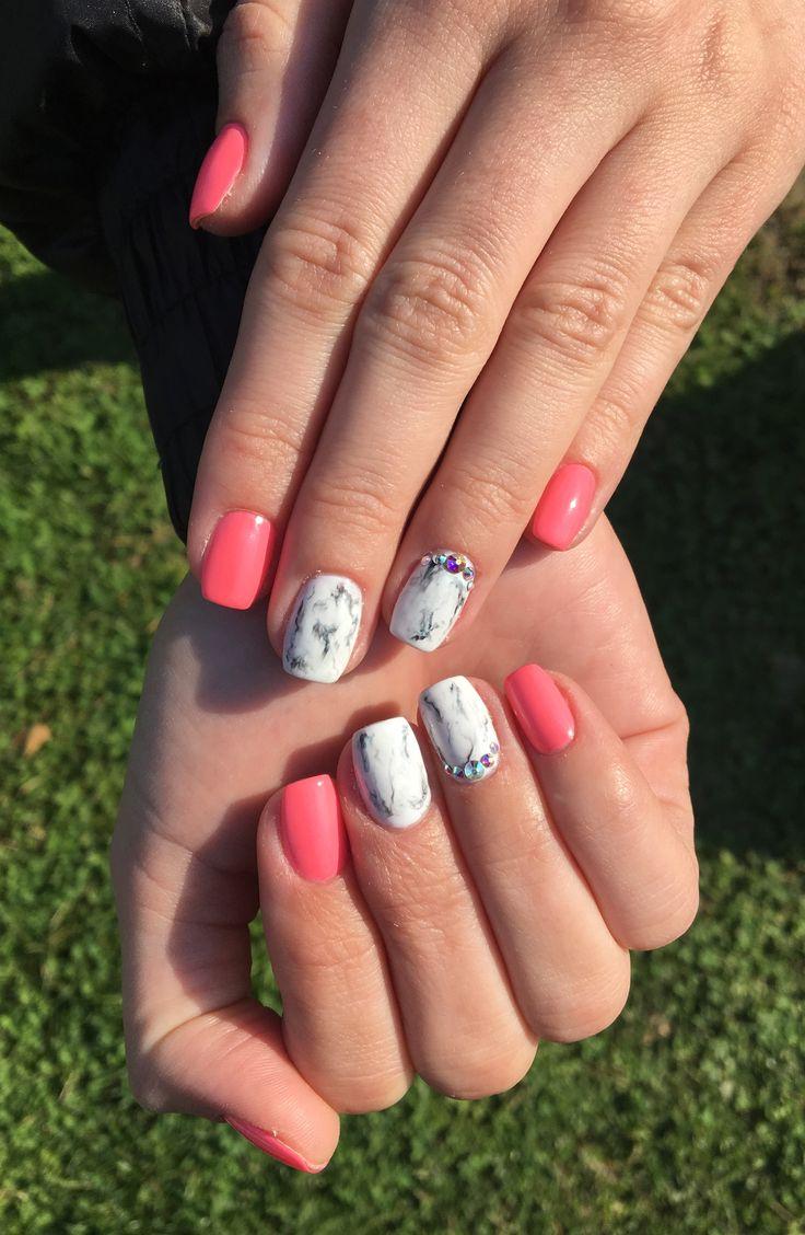 С помощью белого мраморного акцента на одном из ноготков можно сделать нежный розовый маникюр стильным и эффектным.