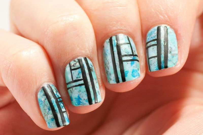 Плюс такого нейл-арта в том, что будущий рисунок должен быть максимально естественным и имитировать текстуру каменных прожилок. А значит, не придется быть предельно аккуратной