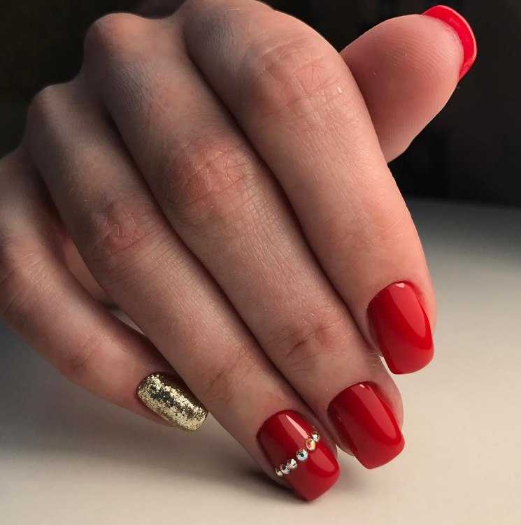Прекрасен красный маникюр на острые вариации ноготков и не менее восхитителен на короткие ногти. Новинки красного маникюра 2019-2020 можно встретить с жидкими камнями, глиттерными элементами, фольгой и полосками. Все это превратит обычный маникюр в роскошный красный nail-art.