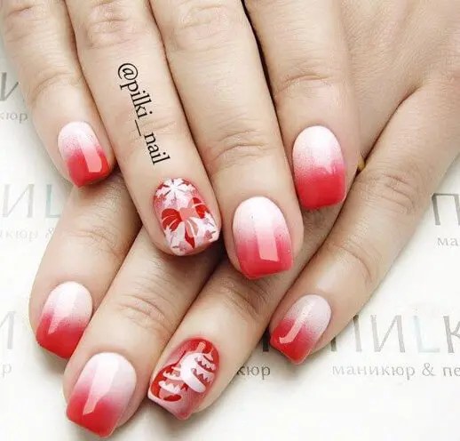 (или омбре) – наверное, наиболее современная интерпретация бело-красного маникюра. Такой нейл-дизайн выглядит очень мягко, женственно и празднично одновременно.