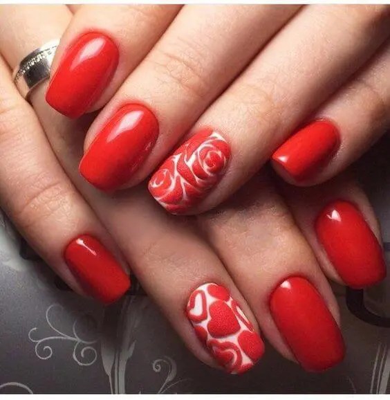 - красные ногти – неизменный атрибут праздничного женского образа;