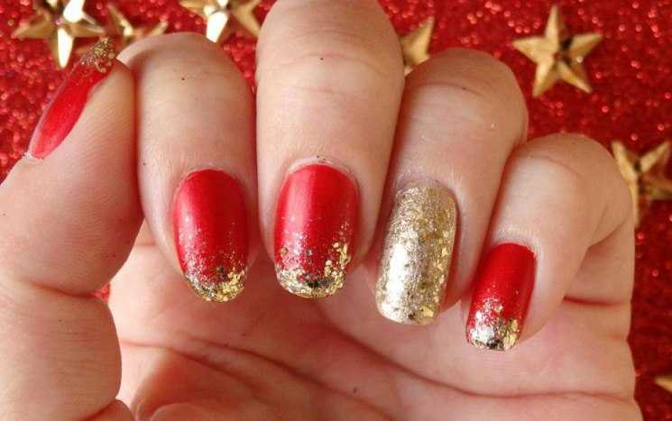 Красно-золотой маникюр довольно сильно привлекает к себе внимание, а потому его стоит сочетать с нарядом или какими-то аксессуарами, в противном же случае он будет смотреться неуместно и вычурно