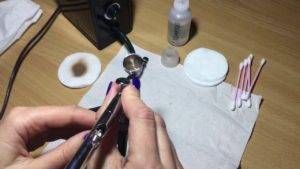 Если маникюр с аэрографом выполняется время от времени, его следует очищать после каждого использования перед хранением. В салоне или в домашнем офисе стирка производится в конце дня, при плотном потоке клиентов, внутренние части устройства не успевают забиться.