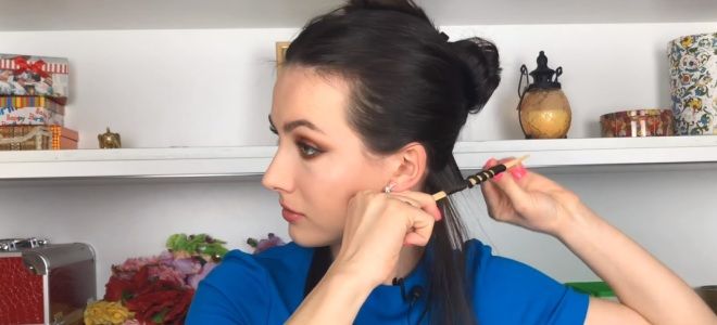 - Начиная сзади и с нижнего слоя волос, выделить тонкую прядь. Накрутить ее по спирали на карандаш или аналогичный предмет, например, китайскую палочку для суши.
