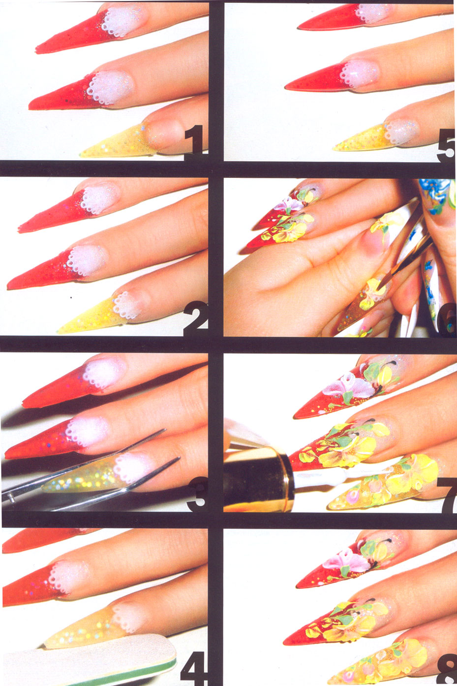 Как уже было сказано, акриловая лепка – работа очень сложная и трудоемкая. Ей обучают на специальных курсах по ногтевому дизайну. Окончить курсы, безусловно, может любой желающий, однако создавать настоящие произведения искусства возможно только после долгой практики. Акриловую пудру можно наносить непосредственно на ногтевую пластину и формировать на ней, но чаще всего форму акриловому шарику придают заранее на фольге или бумаге, а потом переносят готовые изделия на ногти, тщательно приклеивая их.