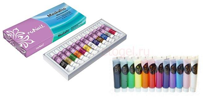 Все акриловые краски друг от друга отличаются, в сущности, лишь консистенцией. То есть акриловыми красками Гамма, купленными в канцелярском магазине, можно рисовать на ногтях.