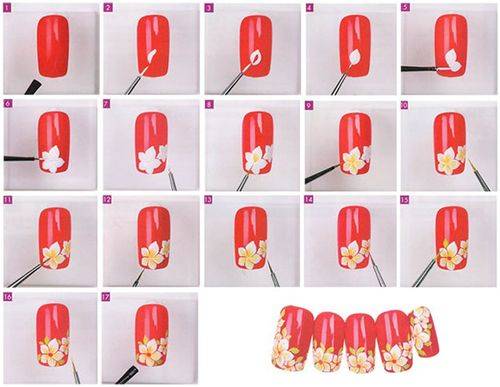 Простые рисунки акриловыми красками на ногтях – это, понятно, цветы. Точка посредине и лепесточки по кругу – вот и цветочек. Растительность уровня «профи» – китайская роспись, жостовская, гжель, натуралистика. Набивать руку можно на типсах, тренировочных картах или картоне.