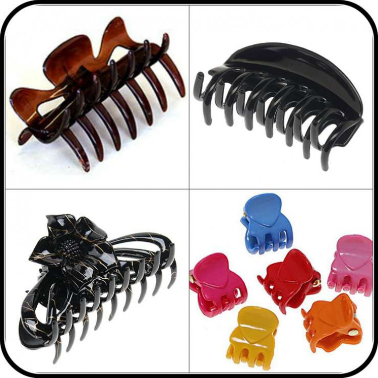 Если это заколка, то пусть она будет из пластика. Для длинных и средних волос идеально подойдут зажимы-крабы и «бананы», они безболезненно собирают волосы, и с ними прическа всегда выглядит аккуратной.