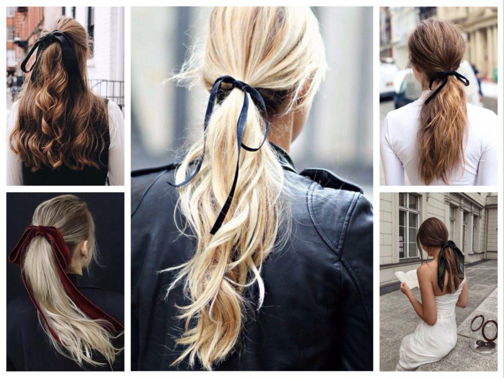 Прически с резинками – это волосы, собранные в пучок. Сегодня в тренде высокие хвосты, которые будут уместны даже на вечеринке или торжественном мероприятии. Актуальны тонкие и широкие ленты, небольшие платочки, которые смотрятся изящно и дополняют образ.