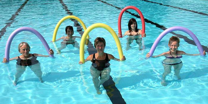 - В отличие от других занятий (на суше), тренировка в воде разрешена людям даже с очень большим весом, ведь нагрузки на суставы нет, тело находится в подвешенном состоянии;