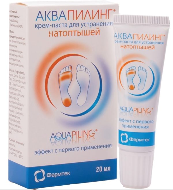 Крем для ног «Аквапилинг» дополнительно насыщен силиконом, который, в отличие от традиционной основы, не делает кожу жирной. Максимальной эффективности можно добиться, если использовать крем сразу же после обработки поверхности раствором. Несомненным преимуществом таких средств можно считать отсутствие сильного воздействия на остальную часть стопы.