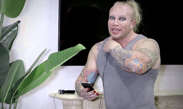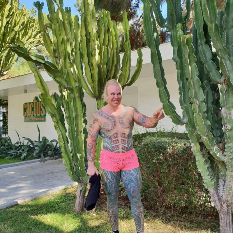 - Также он прибег к татуажу глаз, бровей. Без макияжа увидеть бодибилдера просто невозможно на улице. Ныне он занимается в спортивном зале. Сосредоточил свои усилия на похудении. Тренировки занимают по 1 — 2 часа в день, ходит по 8 километров и посещает массажиста.
