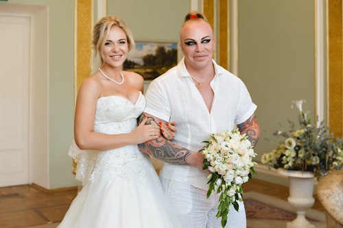 Свадьба Александра и Ирины состоялась в 2015 году. Жених надел светлый летний костюм с рубашкой с коротким рукавом. А невеста выглядела более традиционно. При этом у обоих брачующихся на руках красовался алый маникюр. Молодые люди на торжество пригласили только двух свидетелей. После загса молодожены отправились на венчание, а вечером уже отдыхали на побережье океана.