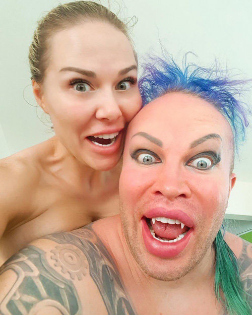 - Он прошел ряд хирургических операций, начиная с липосакции и заканчивая полной сменой лица. На его счету больше 15 операций. Также он вставил грудные и ягодичные импланты, но позже он убрал, зато поставил и клыки.