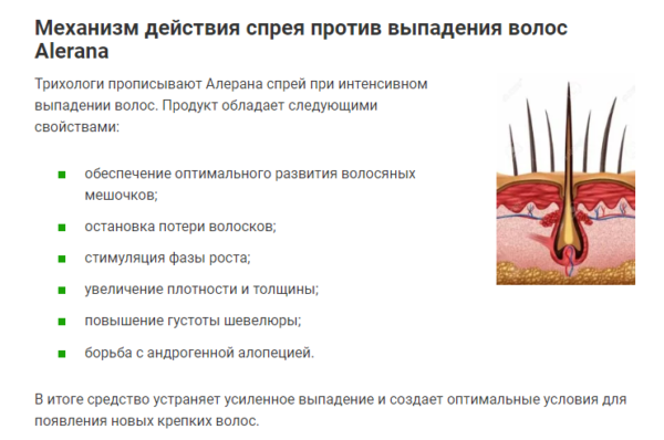 Описание спрея от выпадения волос и для роста Alerana/Алерана