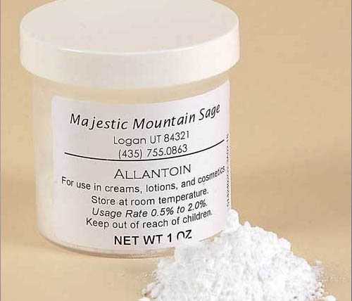 Аллантоин (allantoin – C4H6O3N4) – это бесцветные небольшие кристаллы, легко растворимые в тёплой воде (не выше температуры 40 градусов) и слабо – в холодной. В природе это вещество существует в растительном и животном виде.