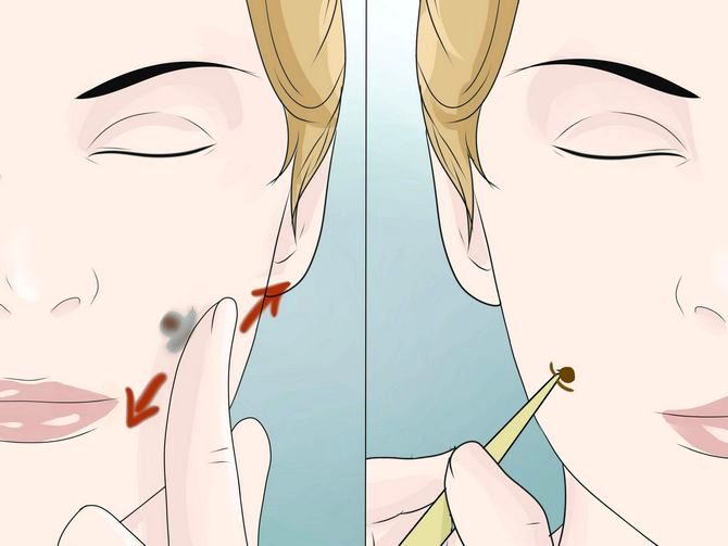 Маркером отмечается точно то место на щеке, где будет располагаться ямочка;