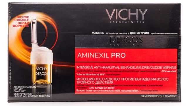 - Aminexil Pro — ампулы от выпадения для мужчин и женщин. Серия Dercos Technique. Виши (Vichy, Франция). $48 (21 шт. / 6 мл).
