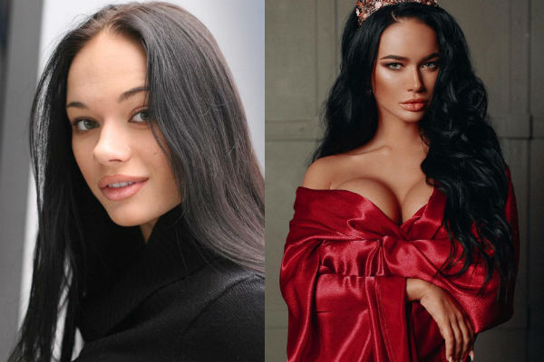 От природы цвет волос русый, но чтобы соответствовать образу знойной брюнетки, барышня красит свои волосы в богатый темный оттенок.