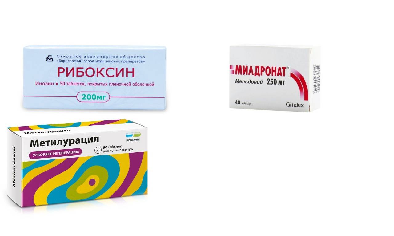 Милдронат – улучшает переносимость организмом физической нагрузки и восстановление его энергетических резервов. Дозировка – от одного до двух граммов в день за 4 приема. Принимать в течение пары недель, затем перерыв две-три недели и можно повторить курс.