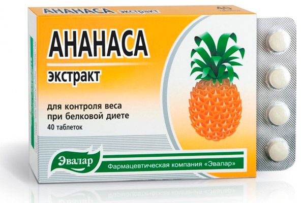 - Таблетки Ананас Эвалар для похудения производятся с применением сердцевины ананаса, овсяных хлопьев, микроэлементов, витаминов и микрокристаллической целлюлозы. Одна упаковка таблеток рассчитана на один курс лечения. Принимают по 1 таблетке в день с едой.