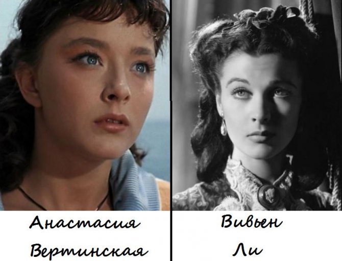 Артистка без школьного аттестата. Попав в 15 лет на пробы, Настя была утверждена на роль Ассоль в фильме «Алые паруса». Удивительно, но режиссера А. Птушко покорила не красота и талант, а «своеобразная отчужденность» девушки от реального мира. Фильм вышел почти одновременно с другим отечественным киношедевром – лентой «Человек-амфибия», в котором Вертинская сыграла главную героиню Гуттиэре. И снова решающими оказались не внешние данные, а то, что режиссеры Г. Казанский и В. Чеботарев «увидели небо» в глазах Анастасии. Только в 1963 году наша героиня поступила в Высшее театральное училище им. Б. Щукина, причем экзамены сдала лишь со второй попытки. И это несмотря на опыт работы в кино и почти годичную «стажировку» в труппе Московского театра им. А. С. Пушкина.