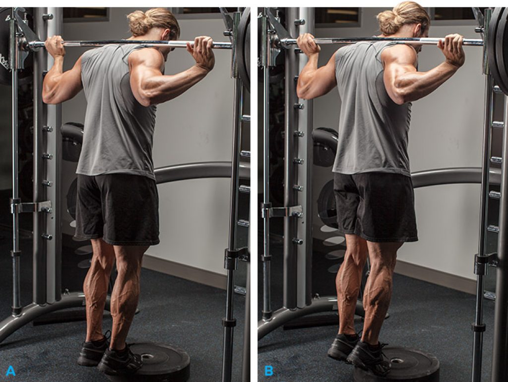 Вы можете использовать вес собственного тела, гантели или штангу. Главное достоинство этого упражнения состоит в том, что его трудно выполнять неправильно. Удерживайте ноги в прямом положении, чтобы растянуть икроножные мышцы и ахилловы сухожилия. В нижней фазе упражнения держите растяжку в течение 1-2 секунд, прежде чем перейти в верхнюю напряженную фазу.