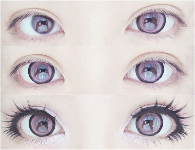- Огромные оформленные глаза, чаще неестественно яркого цвета, имитация азиатского разреза глаз.