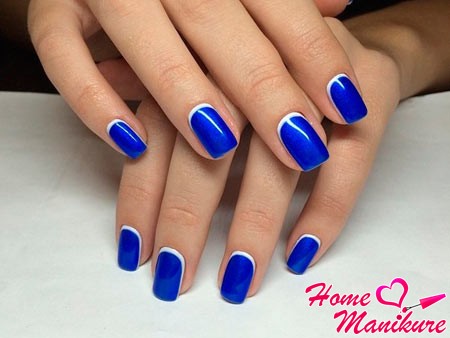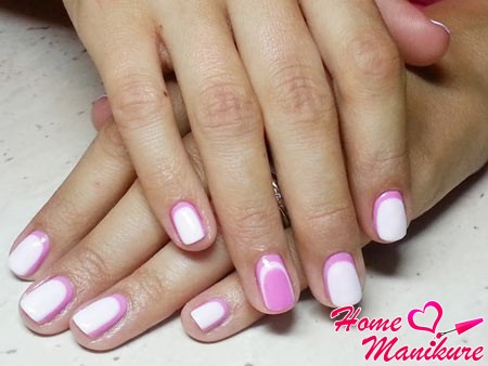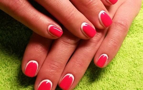 Но и этот вариант претерпевает некоторые изменения. Теперь основное покрытие может быть матовым, а край – глянцевым, и наоборот. Возможна также замена белого лака на какой-либо другой, более яркий. Френч на короткие ногти тоже делают. Только надо более тщательно и аккуратно прорисовать улыбку, а форма ногтей предпочтительнее (в этом случае) квадратная.