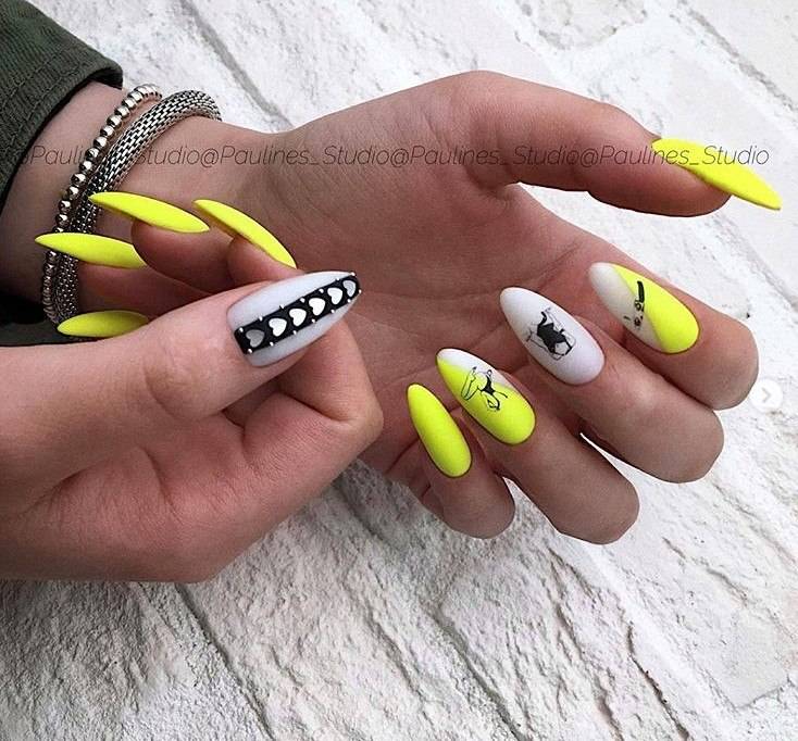 Для тех, кто предпочитает более экстравагантные варианты дизайна, есть возможность проявить всю свою фантазию, экспериментируя с яркими красками маникюра. Это могут быть сочные летние цвета или более глубокие мрачные оттенки. Более смелым барышням подойдут яркие неоновые краски и самые невероятные сочетания. Вариантов масса, убедитесь в этом, наслаждаясь просмотром красочной коллекции фото.