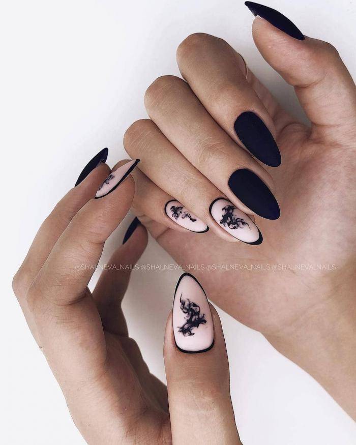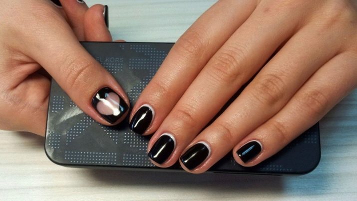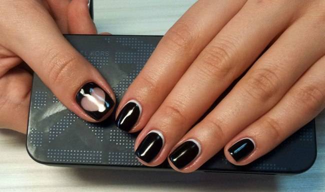 Весьма эффектно и изысканно смотрится на ногтях глубокий и насыщенный черный цвет. Этот оттенок вне конкуренции, поскольку при правильном применении всегда и везде будет уместен. Совмещать этот лак можно практически со всеми красками. Так, например, многие девушки выбирают для выполнения антифренча черный гель или лак и какой-нибудь нежный пастельный оттенок. Классические сочетания серебра и золота с черным тоже всегда остаются актуальными, о чем свидетельствуют превосходные фото.