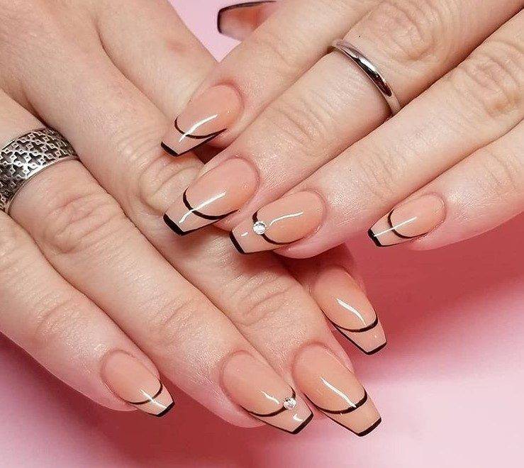 Обратный френч черно-белый получается тоже довольно строгим и стильным. Многие относят к классике и его.