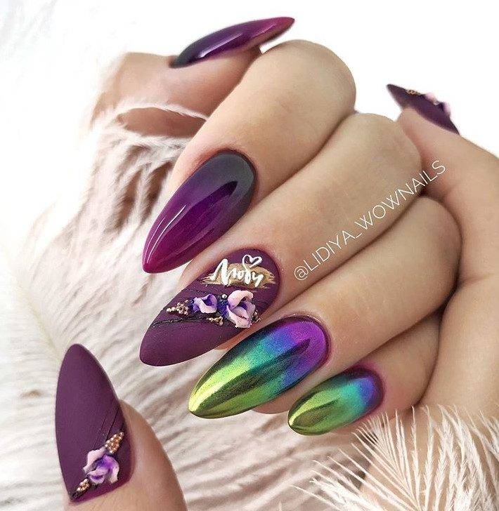 Сочетания других цветов позволяют создать эффектный и яркий маникюр, который не оставит ваши ручки без внимания. Разные цвета хорошо подойдут для повседневного и праздничного стиля.