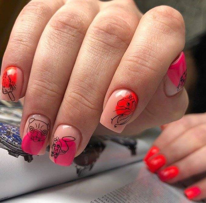 - контрастные цвета (красиво смотрятся на коротких ногтях);