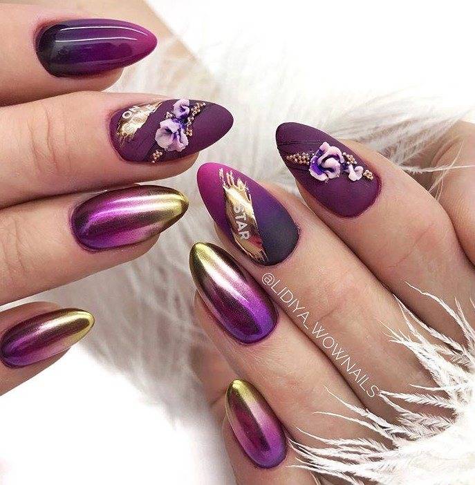 В тренде делать контрастный руффиан, а также использовать золотистые или серебристые цвета покрытия.